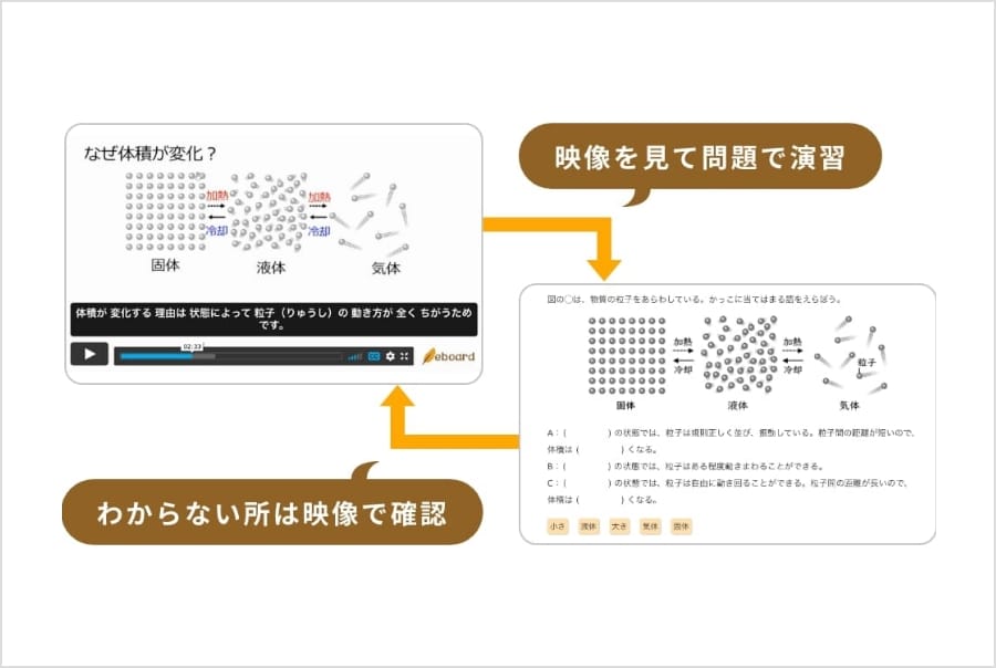 ICT教材を導入しても映像と教材がリンクしていない・基礎からの説明不足で、結局先生が教えることも。 eboardな
